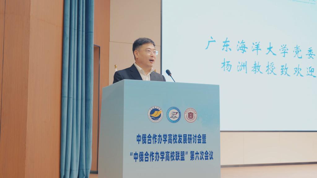 杨洲在致辞中对与会嘉宾表示欢迎,并感谢联盟理事会的信任与支持。他指出,湛江作为古代海上丝绸之路的始发港,如今正依托南海油气、海上风电、海洋牧场等蓝色经济焕发新活力,其独特的海洋禀赋与开放历史,为学校深度参与中俄教育合作注入了深厚的“蓝色”底蕴。本次会议旨在通过“共享、共创、共赢”的新路径,凝聚共识、激发动能,为推进中俄合作办学高质量发展贡献智慧。他呼吁各成员高校继续秉持开放互鉴精神,将合作办学的“盆景”培育成高教国际化的“风景”,将双边交流的“小径”拓展为文明互鉴的“大道”,共同推动中俄教育合作的航船驶向更广阔的蓝海。
